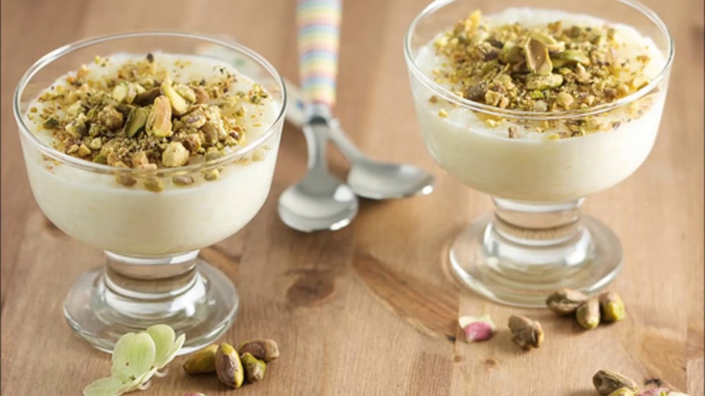 4- نقوم بسكب المهلبية في أطباق صغيرة ونقوم بتزيينها سواء بالفستق أو كما نريد.