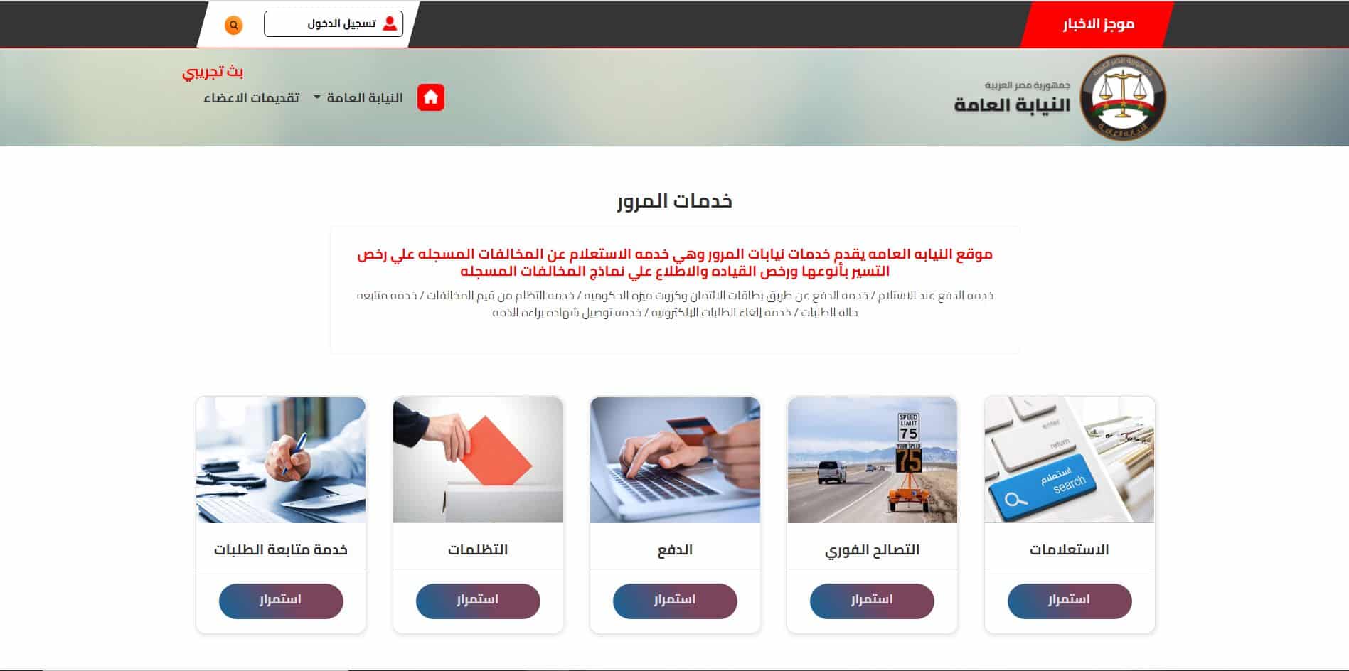 الخدمات المرورية وخدمات الأحوال المدنية لها جزء كبير وأهمية خاصة في باب تقارير حيث نكشف لكم كل التفاصيل الخاصة بخدمات استخراج بطاقات الرقم القومي وشهادات الميلاد والوفاة وجواز السفر، وطريقة التقديم على المعاش المبكر وكل الأمور المتعلقة بـ قائمة العروسة ومنصة مصر الرقمية وممارسة الكهرباء وكيفية الحصول على تأشيرة الإقامة في مصر للأجانب.